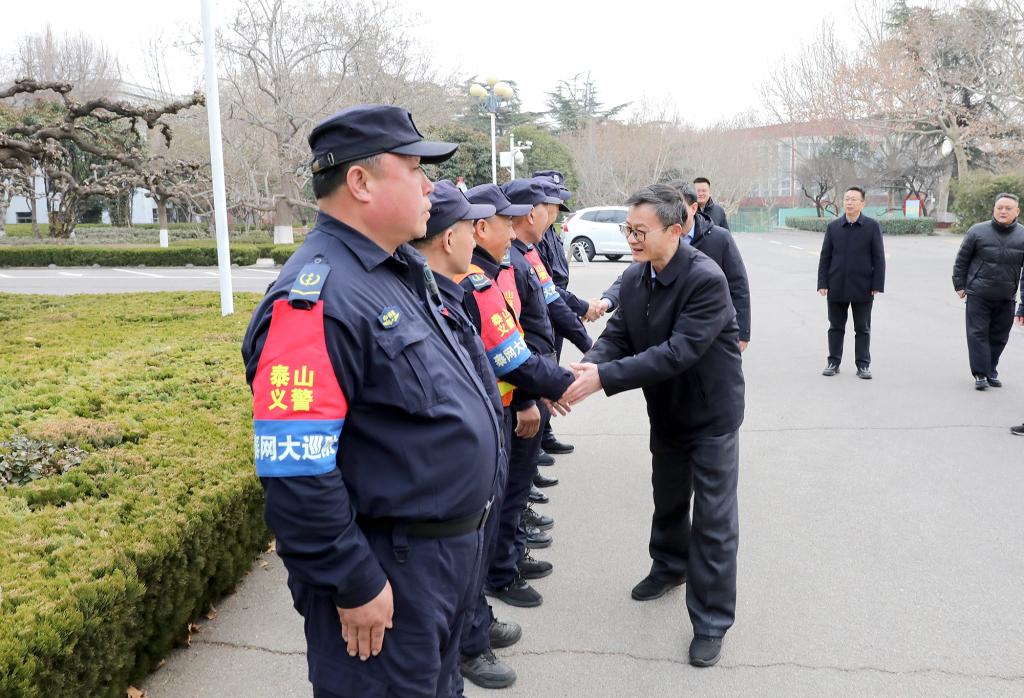 彭延军一行先后来到校门值班室、教学楼、水电暖管理中心、学生公寓等值守岗位,详细了解春节期间各工作岗位的运行情况和保障情况,关切询问大家的工作和生活状况,感谢他们放弃与家人团聚的机会,坚守工作岗位,为校区师生度过一个安全、和谐的春节提供有力保障,并为他们送上慰问品,叮嘱他们合理安排作息时间,注意防寒保暖和自身健康安全。