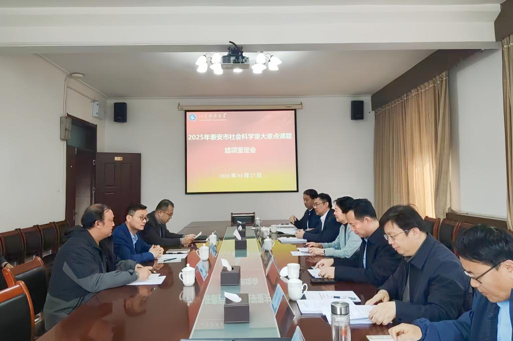 近日,2025年度泰安市社科重大重点课题结项鉴定会在校区举行。泰安市社科联党组书记、主席王艳艳,泰安市社科联副主席梁国华及专家组一行5人到校区组织鉴定会。校区主任彭延军,科研管理办公室负责人及各课题组负责人参加会议。