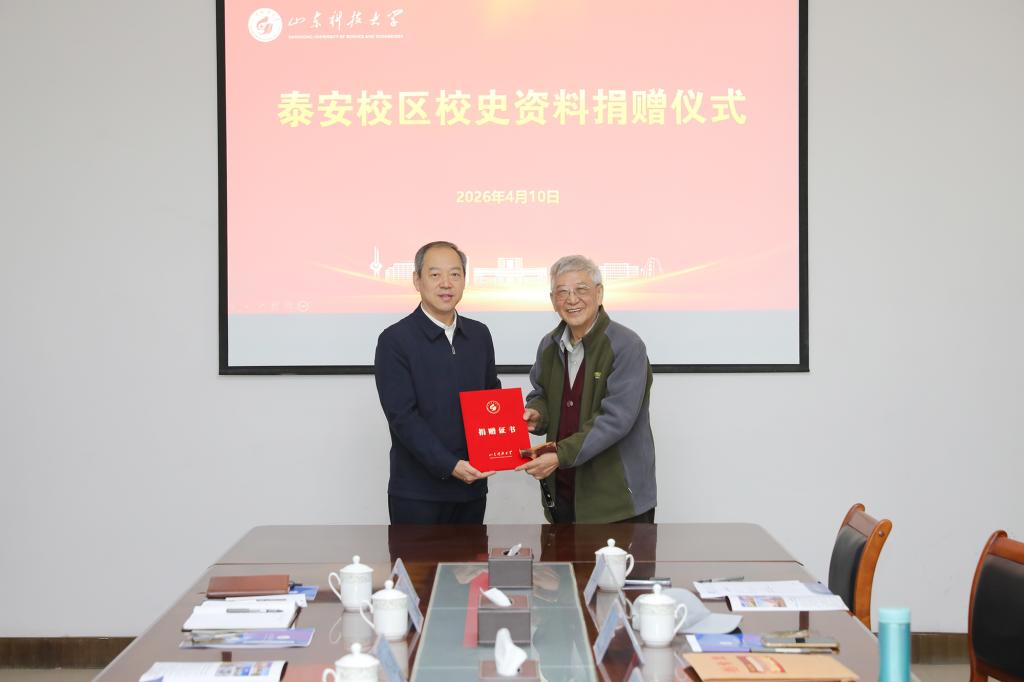4月10日,学校校史资料捐赠仪式在泰安校区举办。校党委副书记刘明永出席仪式。校工会主席李双立主持捐赠仪式。
