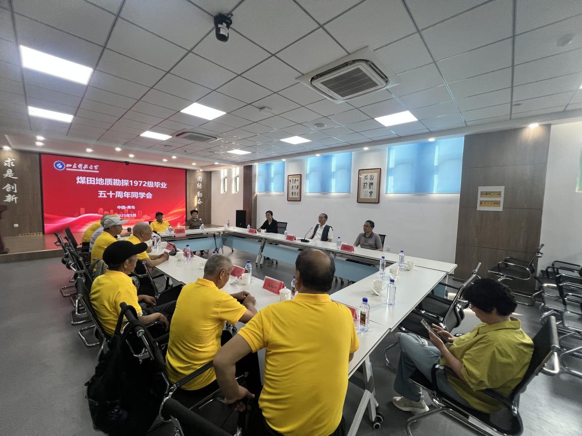 2025年9月16日,煤田地质勘探1972级校友重返母校,共同出席毕业“五十周年同学会”。时任辅导员、原山东科技大学副校长王明镇、地科学院院长常象春、党委副书记兼副院长李晓静应邀参加此次同学会。