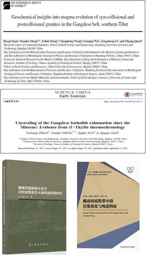 近日,学院孟元库教授团队在青藏高原冈底斯造山带构造演化研究方面取得重要进展。该团队通过多学科综合研究,系统揭示了冈底斯造山带从俯冲到碰撞-伸展的多阶段演化过程,提出了一系列创新性认识,为理解青藏高原隆升机制及新特提斯洋演化提供了关键证据和理论支撑。相关成果已在《Geological Society of American Bulletin》、《Science China: Earth Sciences》等多个地学权威杂志发表,出版专著2部。