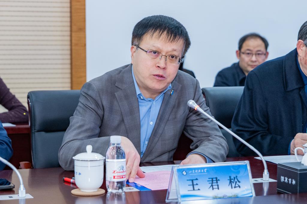 第一阶段由副校长诸葛福民主持,校党委书记王君松致欢迎辞并宣布由4位两院院士、18位国家级人才组成的委员会正式成立。大会现场,王君松为名誉主任金之钧、陈衍景、刘泉声院士,主任委员代世峰院士及委员王晓梅、尹常青等14位国家级人才颁发聘书。王君松在欢迎辞中指出,新一轮科技革命和产业变革关键时刻,国家的“深地探测”、“双碳”战略深入实施及山东省绿色低碳高质量发展等给地球科学领域带来了前所未有的发展机遇,期望各位委员就地科学院的学科方向凝练、特色优势强化、交叉融合创新、人才引育等关键领域多提宝贵意见和建议。同时,要求地科学院认真梳理、逐条研究,把各位专家的建议融入到学院发展决策中,并转化为推动高质量发展的具体方案。