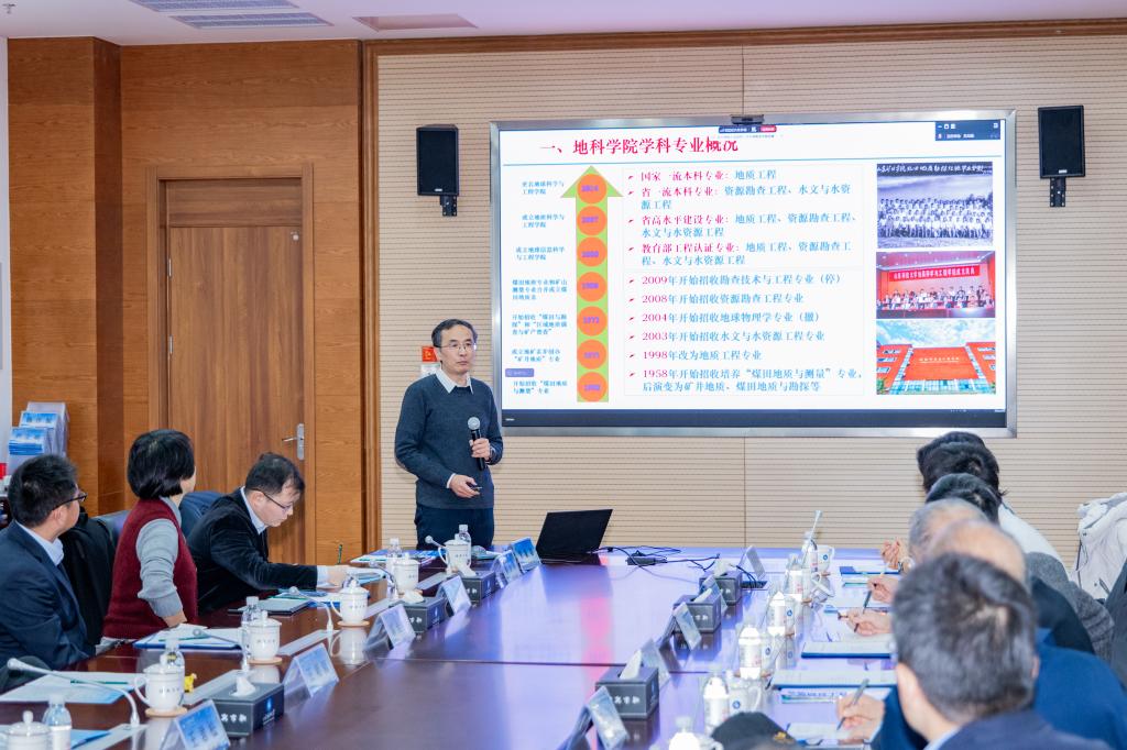 第二阶段由主任委员代世峰院士主持。地科学院院长常象春、矿产系主任王东东和地质学系主任曹玉亭分别就学院整体规划、地质资源与地质工程和地质学两个一级学科规划进行汇报。随后,金之钧等委员专家聚焦学科布局、人才队伍、平台建设等议题展开研讨,并提出多项共识建议:一是进一步凝练优化研究方向,打造高水平国家级团队,构建多方向协同共进的学科体系;二是紧密围绕国家重大战略,建立服务于国家需求的探索与研究机制;三是积极拓展深化国际合作,提升学科国际影响力和话语权;四是建议学校在人才引进、实验室建设等方面加大投入。