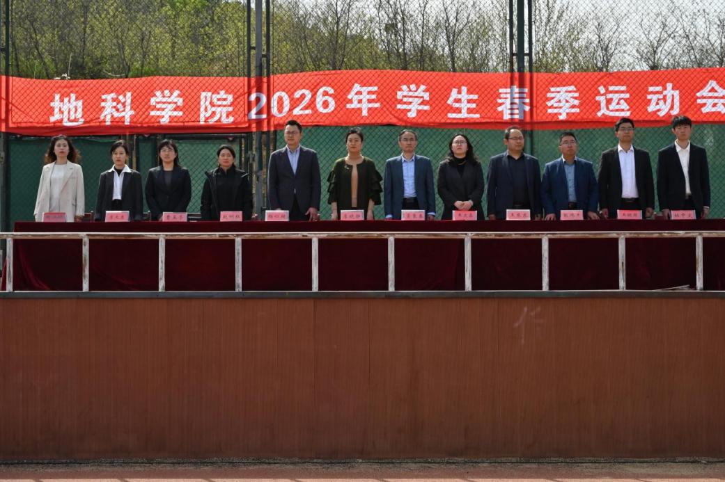 4月14日下午,地科学院2026年学生春季运动会在学校高地操场成功举办。学院党委书记李晓静、院长常象春、副院长杨仁超、各系相关负责人、全体辅导员及2025级本科生参加开幕式。开幕式由学院学工办主任、团委书记王文鑫主持。