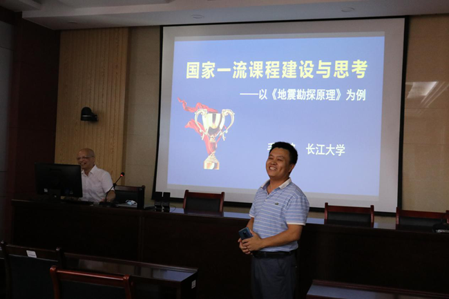 毛宁波教授为全院教师做了题为“国家一流课程建设与思考—以《地震勘探原理》为例”的报告,报告由地科学院副院长尹会永教授主持。作为国家