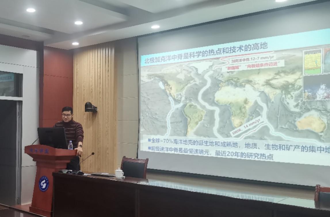 2024年12月13日,地科学院在J6-530承办第108期“名家讲坛”,自然资源部第二海洋研究所张涛研究员为我院师生做题为“北极冰下探测及洋中脊动力学新机制”的学术报告,院长常象春教授主持,学院部分教师及研究生参加了报告会。