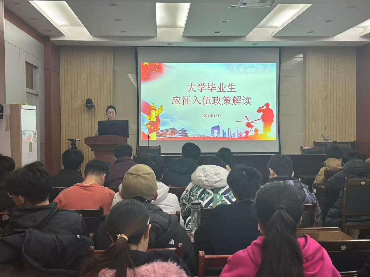 期间,邀请学院退役复学学生代表、学校2024年度“十大优秀学生”李国杰,在J6-530会议室做毕业生征兵政策宣讲1次、在C3一站式社区做在校生征兵政策宣讲1次,覆盖人数近100人。李国杰向同学们分享了她的军旅生涯,并向同学们详细介绍了大学生参军入伍的条件、优势,重点介绍了大学生参军入伍能够享受的优待和发展前景,除了可以享受学费补偿、入伍优待金、考研初试加10分、考研专项等优待,在校生还可以考军校、毕业生还有机会参加部队提干考试成为军官等。现场还进行了征兵政策疑问解答。