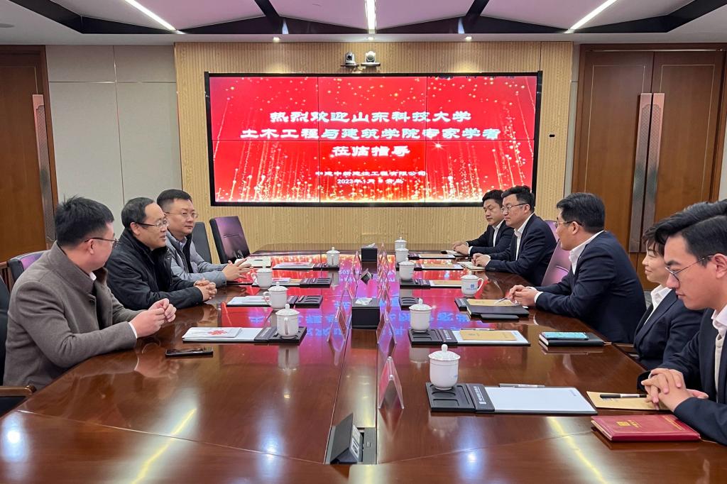 近日,土建学院院长王崇革、副院长李朋、建筑工程系王飞、李明鑫一行4人赴中建中新建设工程有限公司开展交流座谈。中建中新建设工程有限公司副总经理、总工程师李世强,科技部经理王军等出席交流座谈会。