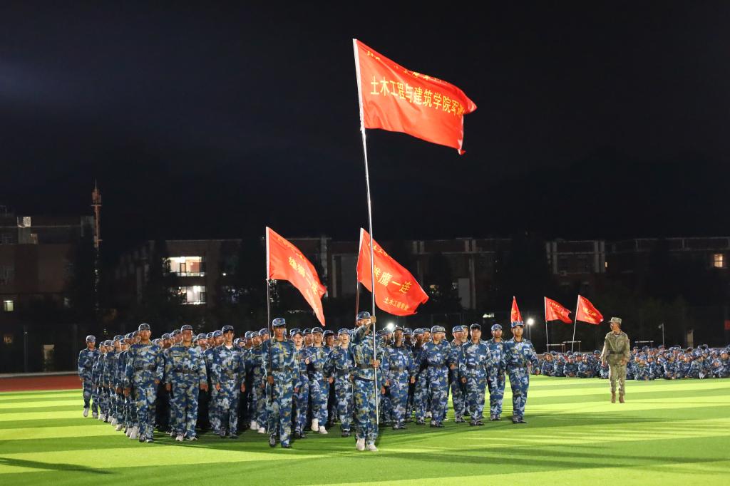 晚上,新生们还进行了夜训。夜训中,教官们严肃认真地指导同学们军姿站立,嘱咐着正步走和行列齐走等系列规范动作,同学们毫不懈怠,在教官的口令下迅速做出相应动作,队形整齐,展现出高度的团队凝聚力。