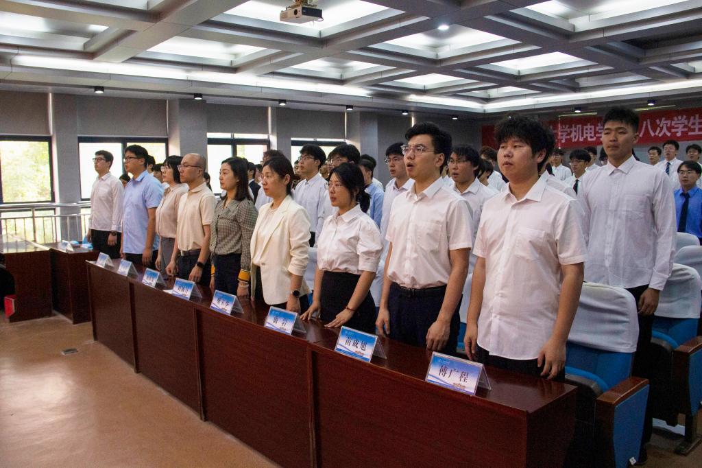 经过前期的预备会议,大会开幕式于下午四点正式开始。会议伊始,全体师生起立,行注目礼,奏唱《中华人民共和国国歌》。随后大会正式开始,刘梅月致开幕词,她代表学院党政对大会的召开表示热烈祝贺,肯定了学生会、研究生会2024-2025学年在示范引领、服务学生等方面所做的工作。她寄语机电学子三点期望:一是要坚定理想信念,做有复兴脊梁的时代新人;二是要勤奋努力学习,做有追梦底气的时代新人;三是要勇于担当作为,做有接棒意识的时代新人。