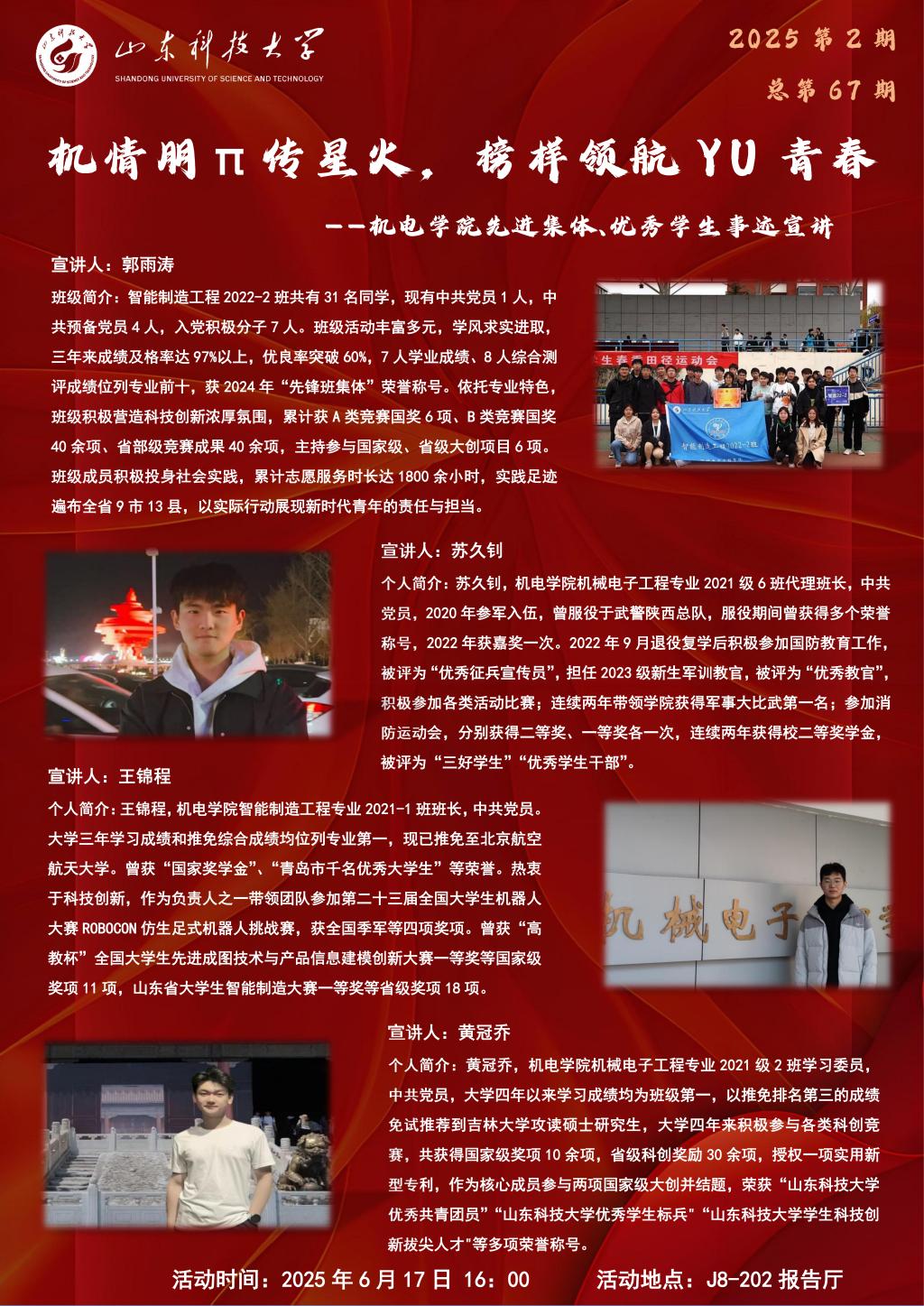机情朋π传星火,榜样领航YU青春——机电学院先进集体、优秀学生事迹宣讲