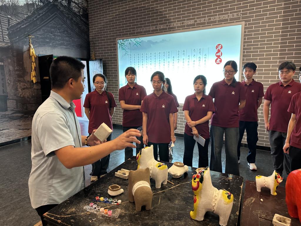 “看似简单的一笔,藏着不少讲究。”在随后的泥叫虎彩绘体验环节,队员们才真正体会到非遗技艺的分量。拿起细尖笔,想给虎脸勾勒出对称的眼线,手腕稍不稳,线条便歪向一侧;调配颜料时,水分稍一控制不当,画笔便在泥坯上留下深浅不一的斑驳。聂鹏老师在旁不时指点:“上色要先浅后深,想画什么都可以尝试。”鼓励着队员们发挥天马行空的想象力,非遗文化就这样在传统与创新的碰撞中绽出新的花火。