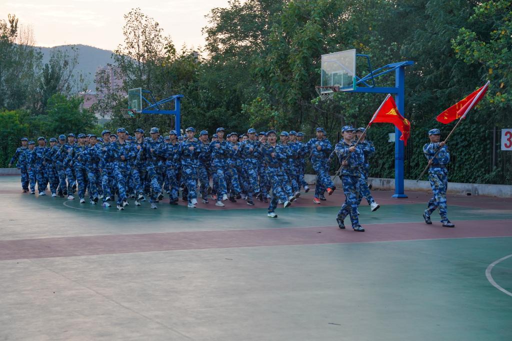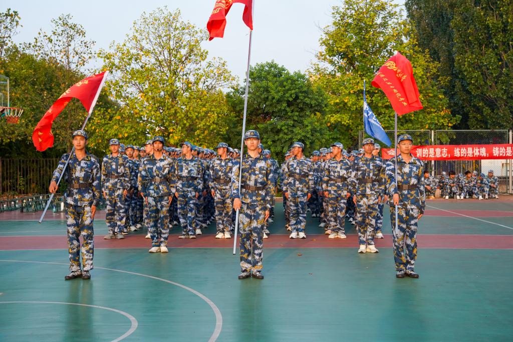 训练场上,同学们军姿挺拔,目光如炬。在教官清晰有力的口令指挥下,各连队方阵依次进行队列行进与正步走练习。队员们动作整齐划一、摆臂刚劲有力、踢腿虎虎生风、砸地声沉稳坚实,尽显青春学子的蓬勃朝气与钢铁般的纪律作风。方阵最前方,擎旗手高擎院旗,身姿挺拔,引领整个队伍威武前行,旗帜在秋风中猎猎作响,成为训练场上一道亮丽的风景线。