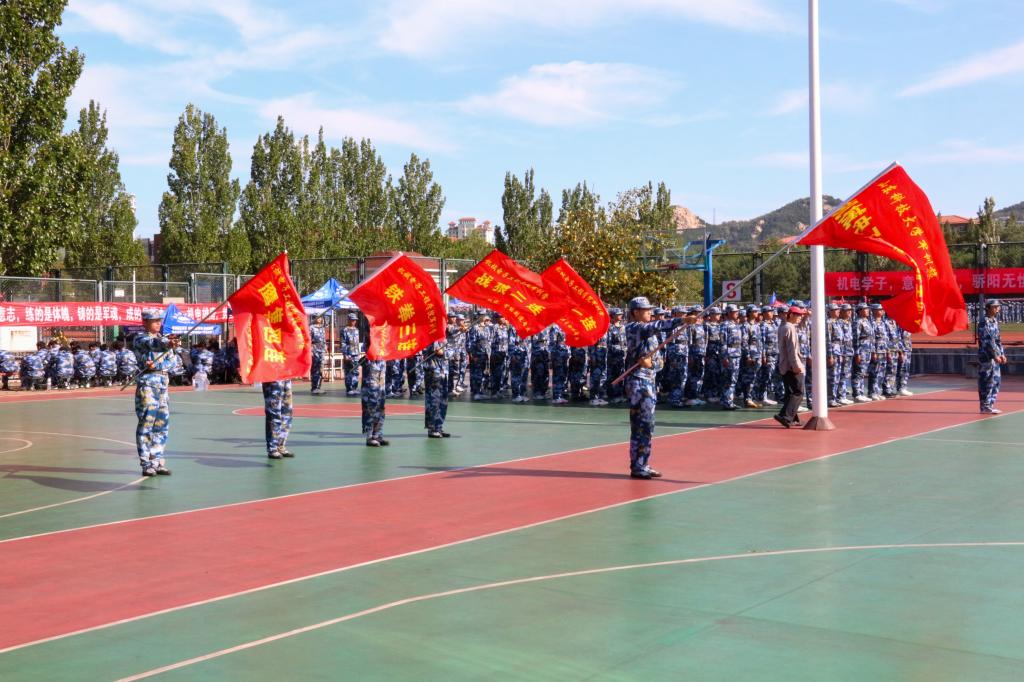 每日清晨,随着《分列式进行曲》的响起,旗手高擎院旗,迎风扬起。那面鲜红的旗帜在朝阳下格外醒目,迅速成为全方阵的视觉焦点。新生们以旗帜为参照,自觉调整行进节奏与动作幅度:步速跟着旗帜摆动的频率,摆臂高度向旗角看齐,连手指绷直的角度都力求规范。方阵的脚步声也从最初的参差不齐,逐渐融汇成整齐划一、铿锵有力的节奏。