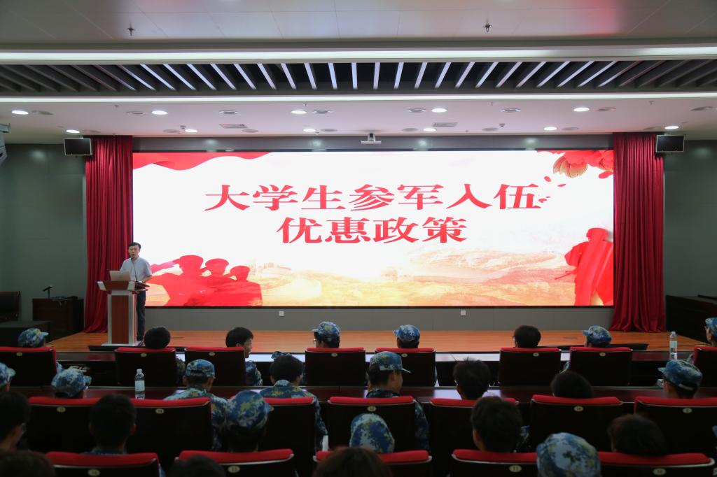大会最后,辅导员宋阔开展征兵入伍政策宣讲。他从国家战略需求、大学生参军优势、入伍流程、优抚政策等方面进行详细解读,重点介绍了学费补偿、升学优惠、职业发展等学子关心的内容,鼓励有志向、有担当的同学积极响应国家号召,投身国防事业,在军营中实现人生价值。宣讲内容详实、贴合需求,为有参军意愿的学生提供了清晰指引。