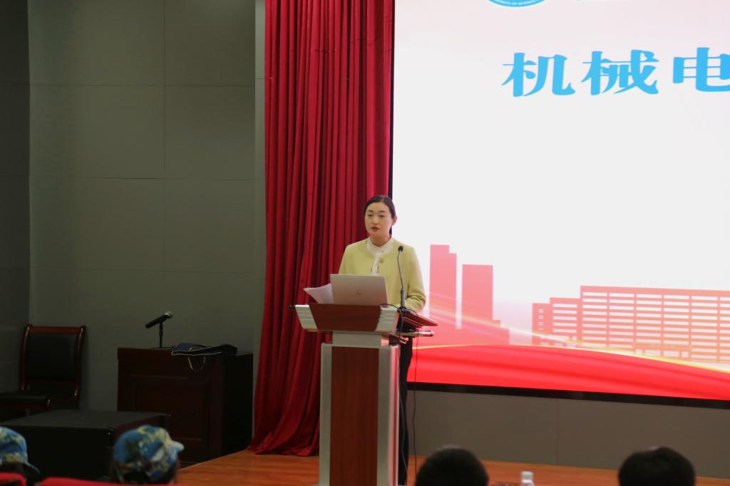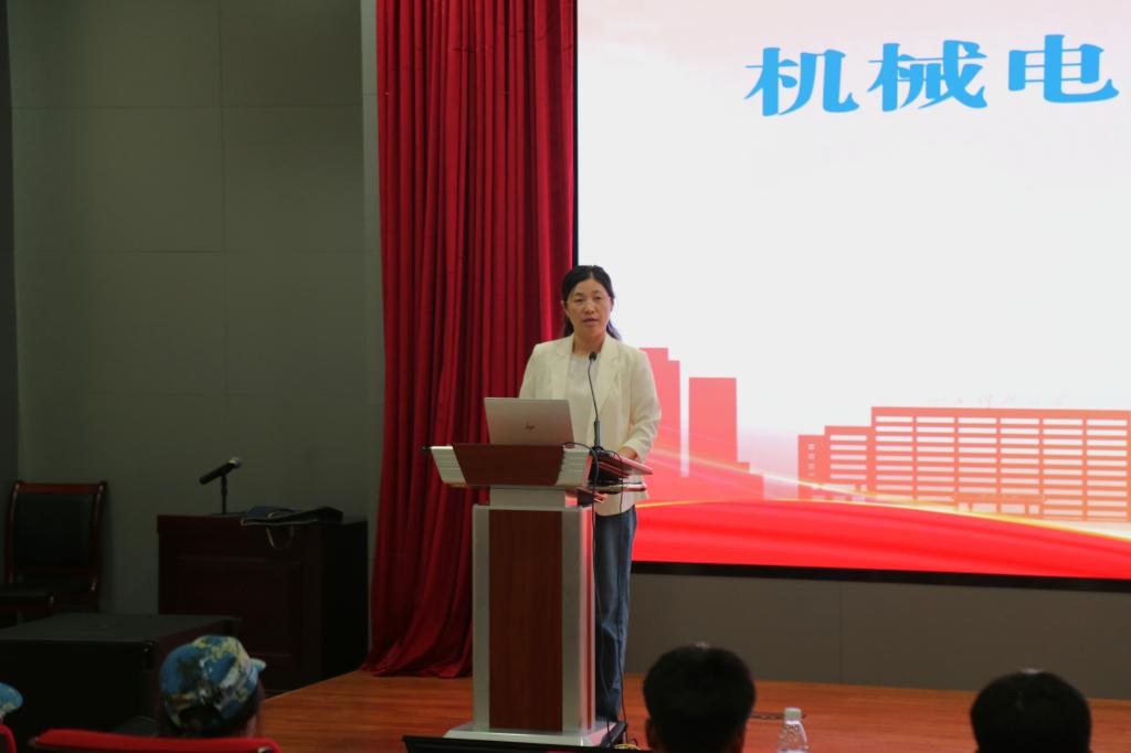青春映迷彩,热血铸荣光。在2025级新生军训中,机电学院荣获“军训先进单位”荣誉称号。为表彰先进,巩固军训成果,进一步营造团结进取、敬业奉献、争先争优的良好氛围,9月19日,机电学院2025级学生军训总结表彰大会于图书馆求新讲堂如期举行。学院党委副书记兼副院长刘梅月,学生工作办公室主任(团委书记)樊玉华,辅导员宋阔、罗雨婷、任伟健出席大会,2025级全体新生共同参会,见证军训成果,共启青春新程。