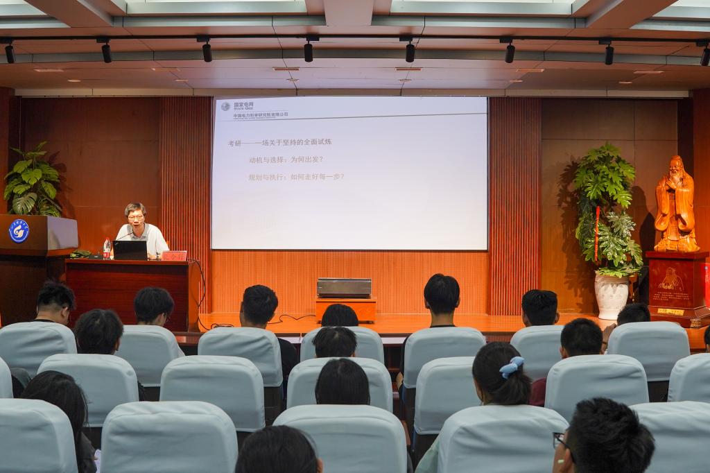 9月20日,机电学院学生会在J8-202教室举办“榜样指引,校友领航”主题报告会,应学院邀请,中国电力科学研究院高级工程师、机械设计制造及自动化(定单)专业2015届校友孔令行担任主讲人,学院2023、2024级近150余名学生代表参加活动,报告会由学院学工办主任(团委书记)樊玉华主持。