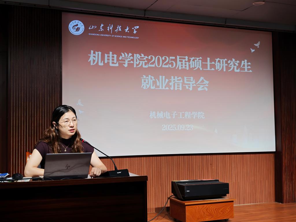 为扎实推进2026届毕业生就业工作,帮助学生破解求职困惑、明晰就业流程、提升求职竞争力,9月24日,机电学院在学院报告厅组织召开硕士研究生就业指导专题培训会,毕业班辅导员、学工办主任(团委书记)樊玉华主讲,学院2026届全体硕士研究生参加会议。