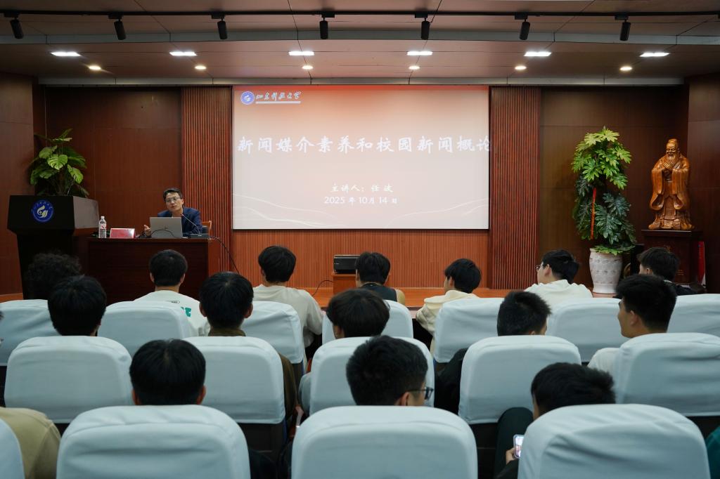 为进一步提升学生新闻采写水平与宣传工作专业素养,筑牢学院学生宣传队伍能力根基,10 月 14 日,机电学院于 J8-202 学术报告厅举办新闻基本素养专项培训活动。本次培训特邀学校融媒体中心任波老师担任主讲,机电学院辅导员曲岩主持,机电学院媒体部全体成员、学生会各部门成员及大一大二各班宣传委员共同参与学习,现场学习氛围浓厚。