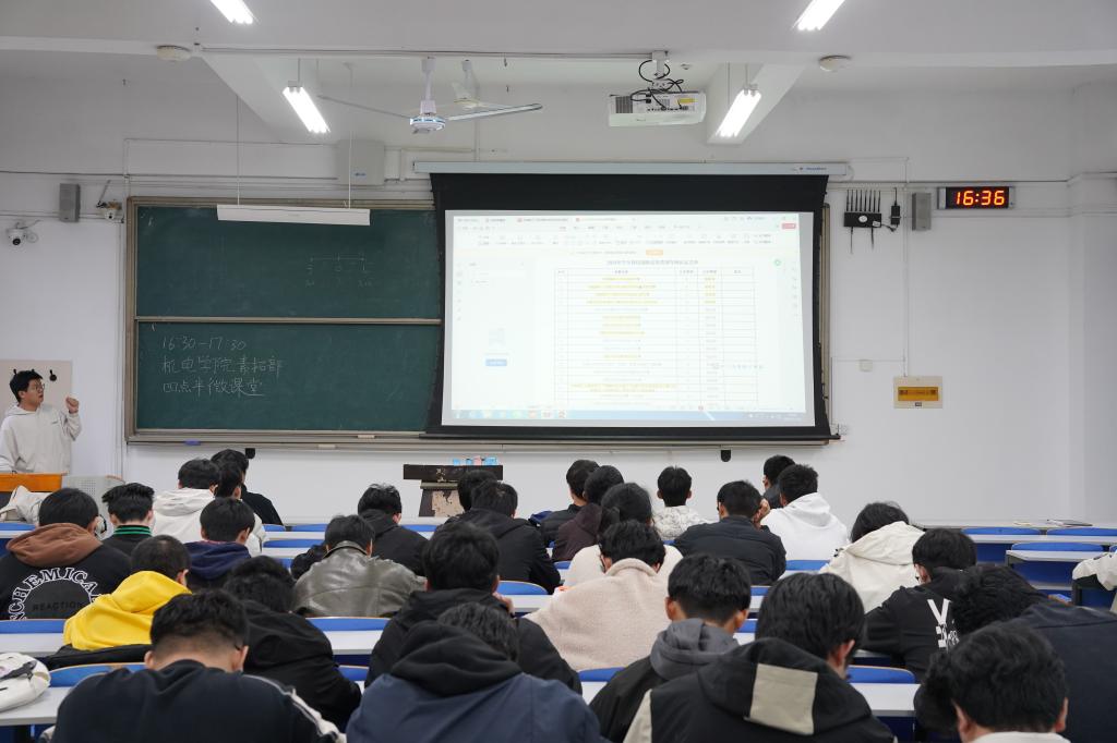 为帮助同学们解决科创入门困惑、积累实践经验,11月14日,机电学院学生会在J14-109举办“智启未来,技创无限”科创经验分享活动。本次活动邀请小平科技创新团队成员张凌敖担任主讲人,为同学们送上了一场贴合科创需求的实用经验指导。