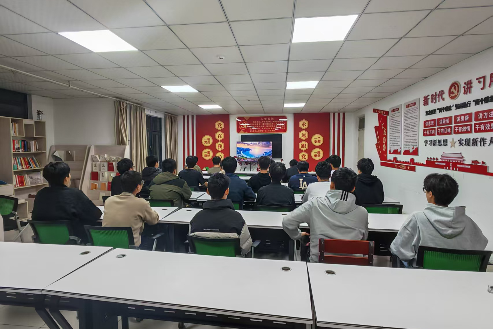 为深化爱国主义教育,传承红色基因,11月15日晚,机电学院学生会在GC8党员之家组织开展了《红巴山》红色观影活动,2025级各班级新生代表参加活动。