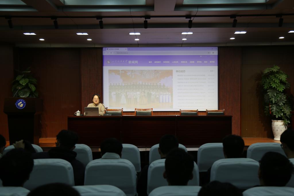 开班第一课特邀学校融媒体中心徐展授课。徐展通过具体的案例,以新闻报道“指向性”为切入口,针对优秀的新闻稿件应具备哪些特点,从标题、文章结构、文章内容等方面深入浅出地讲述了如何增强指向性、编写体现优势的题目等关键要点,并围绕新闻概述、新闻照片、写作技巧与注意事项等方面进行精彩讲授。她强调了新闻的时效性和政治正确性的重要地位,增强了同学们做好新闻宣传工作的信心和决心。