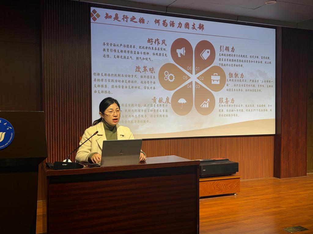 团委书记樊玉华以“‘团'聚青春力量,赋能支部活力”为主题,结合知信行理论,从“了解活力团支部、激发团支部活力、榜样引领团支部”三个方面,深入解读了团支部建设的核心要素和重点工作方向。在讲解中,樊玉华结合共青团的实际工作,分享了生动的案例和成功经验,展示了团支部工作的创新举措与实践成果。