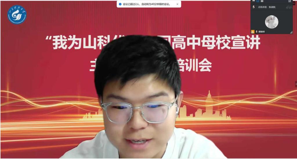 为助力“我为山科代言”回高中母校宣讲社会实践活动扎实开展,引导学子反哺母校、传递山科风采,2026年1月26日下午,机电学院举办线上主题培训会。活动由团委老师李一杰主持,机械设计制造及其自动化2024-4班张凌敖、智能制造工程2024-3班王珂珺同学分享经验,全体参与2026寒假主题实践的学生齐聚云端,为实践活动筑牢基础。