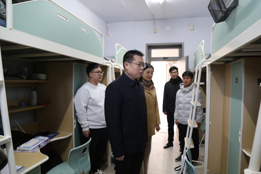 课后,朱敬义走进班级学生宿舍,细致查看住宿环境,与同学们亲切交谈、畅聊心声。他耐心询问同学们的假期生活、返校适应情况以及新学期学习规划,认真倾听大家在学校教育教学、日常管理、后勤保障、校园服务等方面的意见建议,对同学们提出的合理诉求逐一作出回应、明确解决方向。谈话中,他勉励同学们珍惜宝贵的大学时光,快速调整状态、收心归位,以积极向上、奋勇争先的精神风貌投入到新学期的学习生活中。同时,他对同学们提出殷切期望:“江山代有才人出,希望同学们立大志、明大德、成大才、担大任,在实践中锤炼品格、增长才干,努力超越师者、奋勇争先,成长为有理想、敢担当、能吃苦、肯奋斗的新时代好青年。”