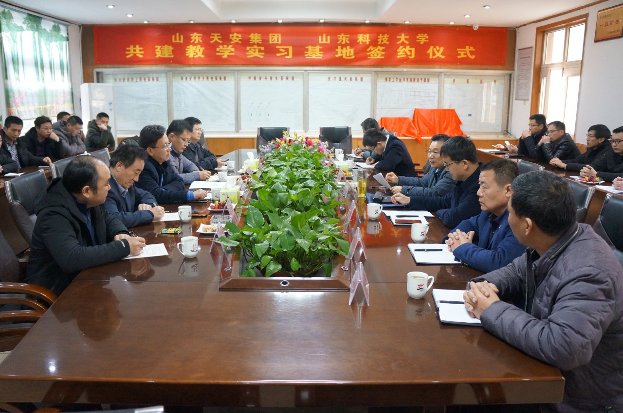 韩宝坤简要介绍了学校、学院的基本情况,他表示,此次创新就业实践基地、教学实习基地签约挂牌是学院加强学生创新就业、强化实践教学、加强产学研合作的具体体现;是山东天安矿业集团深化改革、科技兴企的重要战略;是校企强强联合、资源共享、优势互补的重大举措。山东天安矿业集团作为一家多元发展的民营股份制企业,是省内知名企业。公司市场定位准确、业务涵盖范围广、发展潜力巨大。山东科技大学作为省属重点高校,为国家输出了大批高素质人才。希望校企双方在合作协议基本框架下,强强联合,秉承资源共享、优势互补、务实创新、开拓进取、合作共赢的原则,建设好基地,使用好基地,为人才培养和经济社会发展做出新的更大贡献。