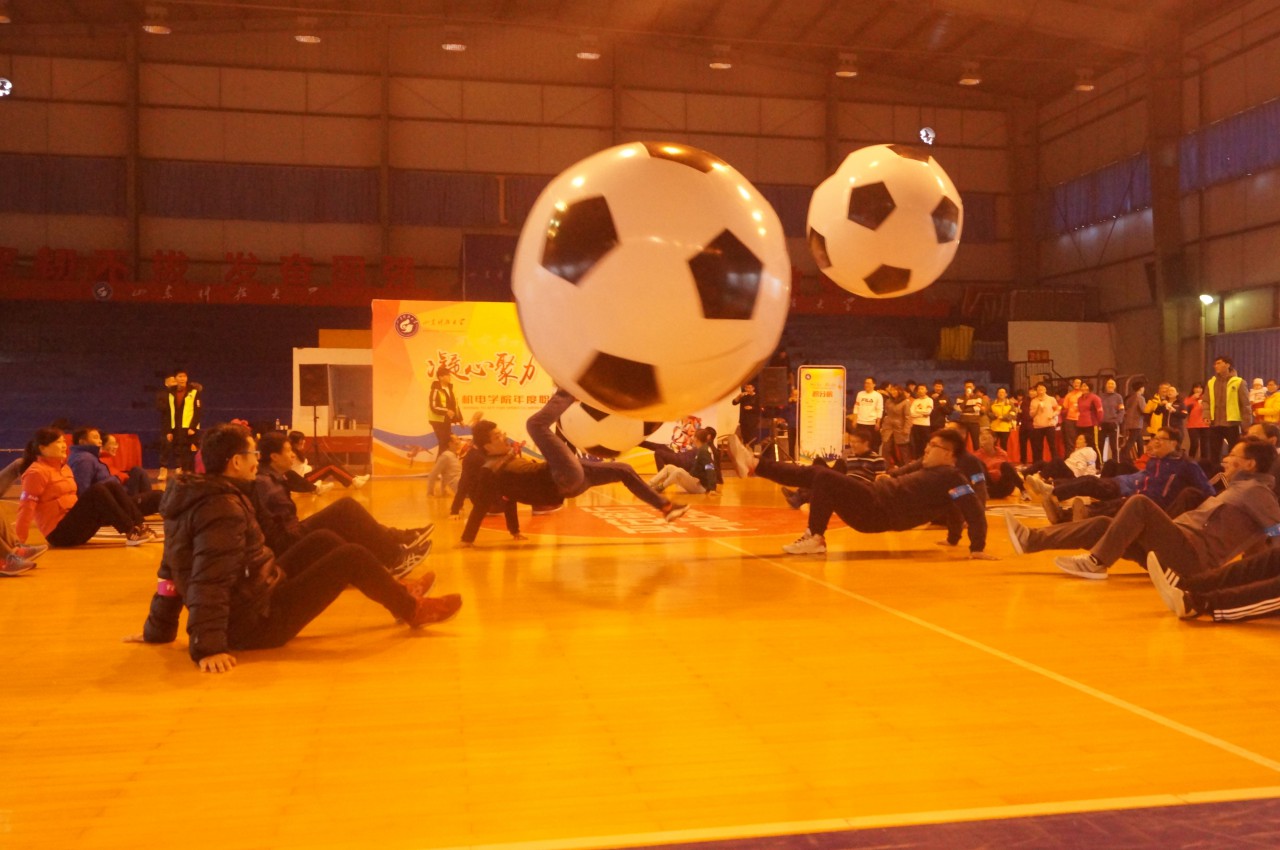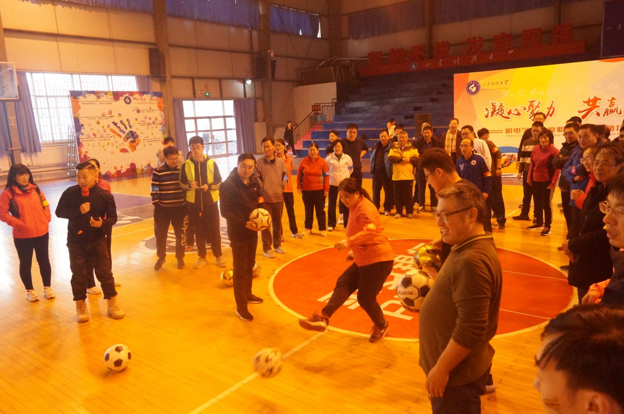 机电学院党委副书记、常务副院长韩宝坤致开幕词,向全院教职工一年来的辛勤努力表示感谢,向大家送上新年的祝福。此次趣味狂欢活动共设置了6个集体项目,分别是机电足球、玩转世界杯、移花接木、机电战车、同心鼓和丢掉烦恼,项目丰富多彩,集趣味性与竞技性于一体。活动过程中,各支队伍团结协作、精神抖擞,不畏压力,永争第一,充分展示了机电人不言放弃、努力进取的精神风貌。