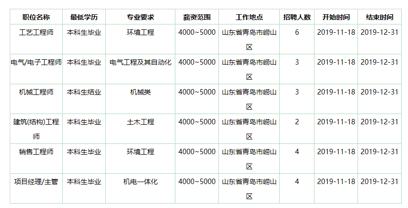 1、市场营销、环境工程、电厂化学、给排水等相关专业,本科及以上学历,接受应届毕业生。