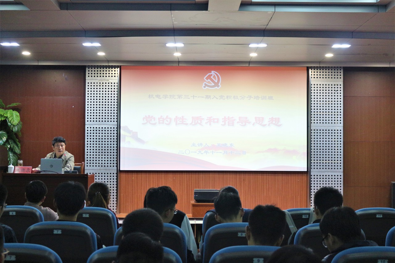 11月12日,学校合作发展处处长、校友工作办公室主任王晓东应邀为机电学院第三十一期入党积极分子培训班讲授党课。