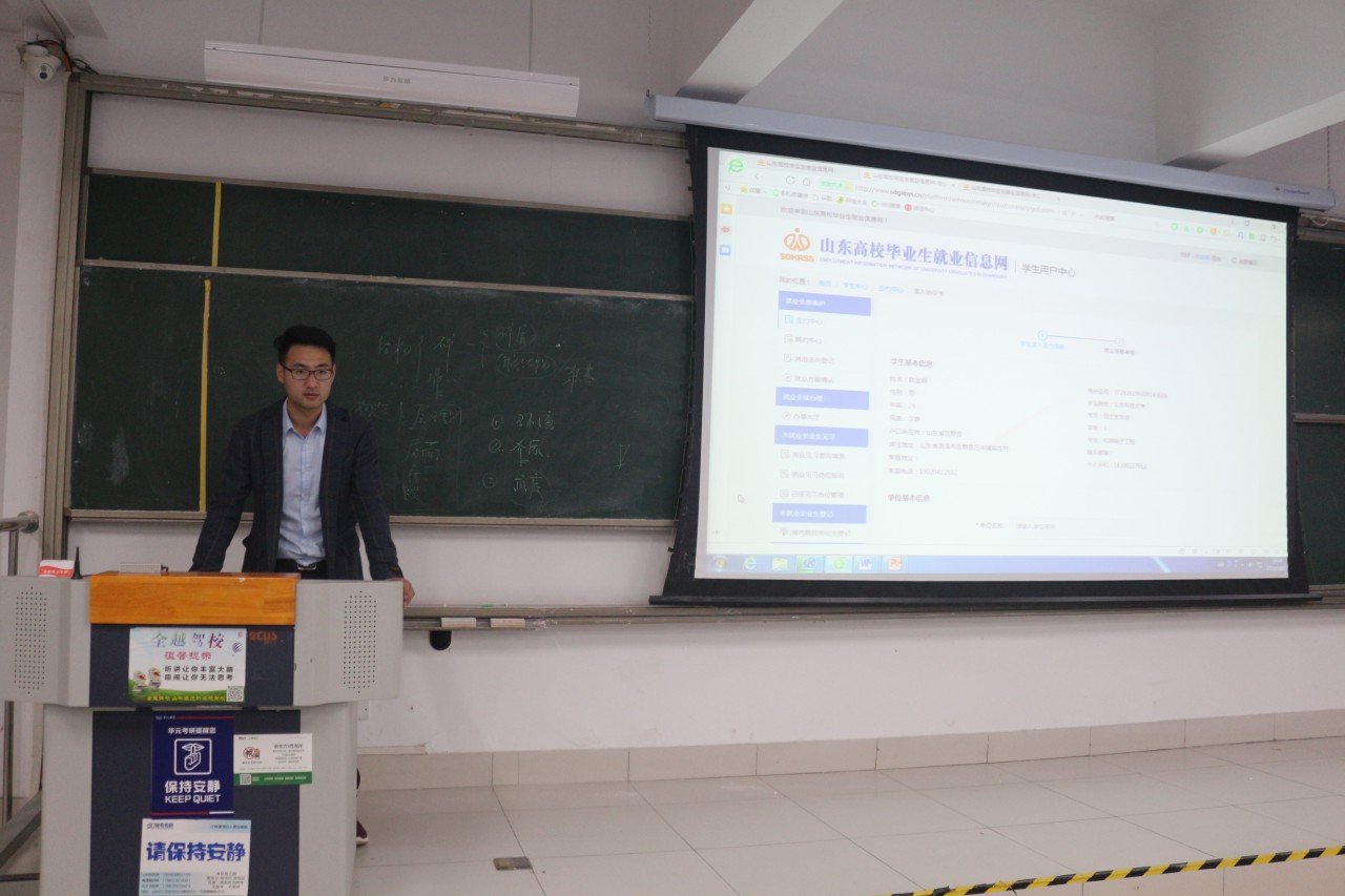 本次讲座由团委老师王玉鹏主讲。王老师从山东省高校毕业生就业信息网谈起,通过深入解读档案的去向及网站的具体使用方法,强调了填写信息与派遣档案的重要性,同时为大家介绍了《三方协议书》、《报到证》等就业过程中的材料,为同学们与用人单位签订合同奠定了坚实的基础。随后,王老师与同学们进行了亲切地座谈,引导同学们深入了解目前就业情况,并针对同学们提出的一些问题进行就业引导,给出自己的切身经验与建议。当谈及