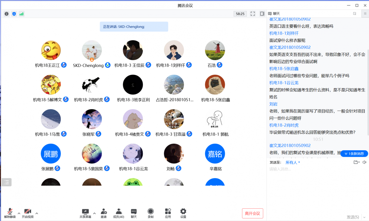 会上,两位老师回答了同学们提出的关于复试备考的共性问题,并结合同学们在专业相关知识、英语问答、复试心态、个人专长、毕设题目、院校调剂等方面可能遇到的问题进行了深入剖析,提出相应解决办法。两位老师从面试官的角度,向同学们分享了复试时考官着重关注的学术品质和面试闪光点。最后,老师们强调,同学们应严格遵守考试纪律,耐心认真答题,展现出机电学子良好的道德风采与专业素养,并祝愿考研同学复试顺利,金榜题名。