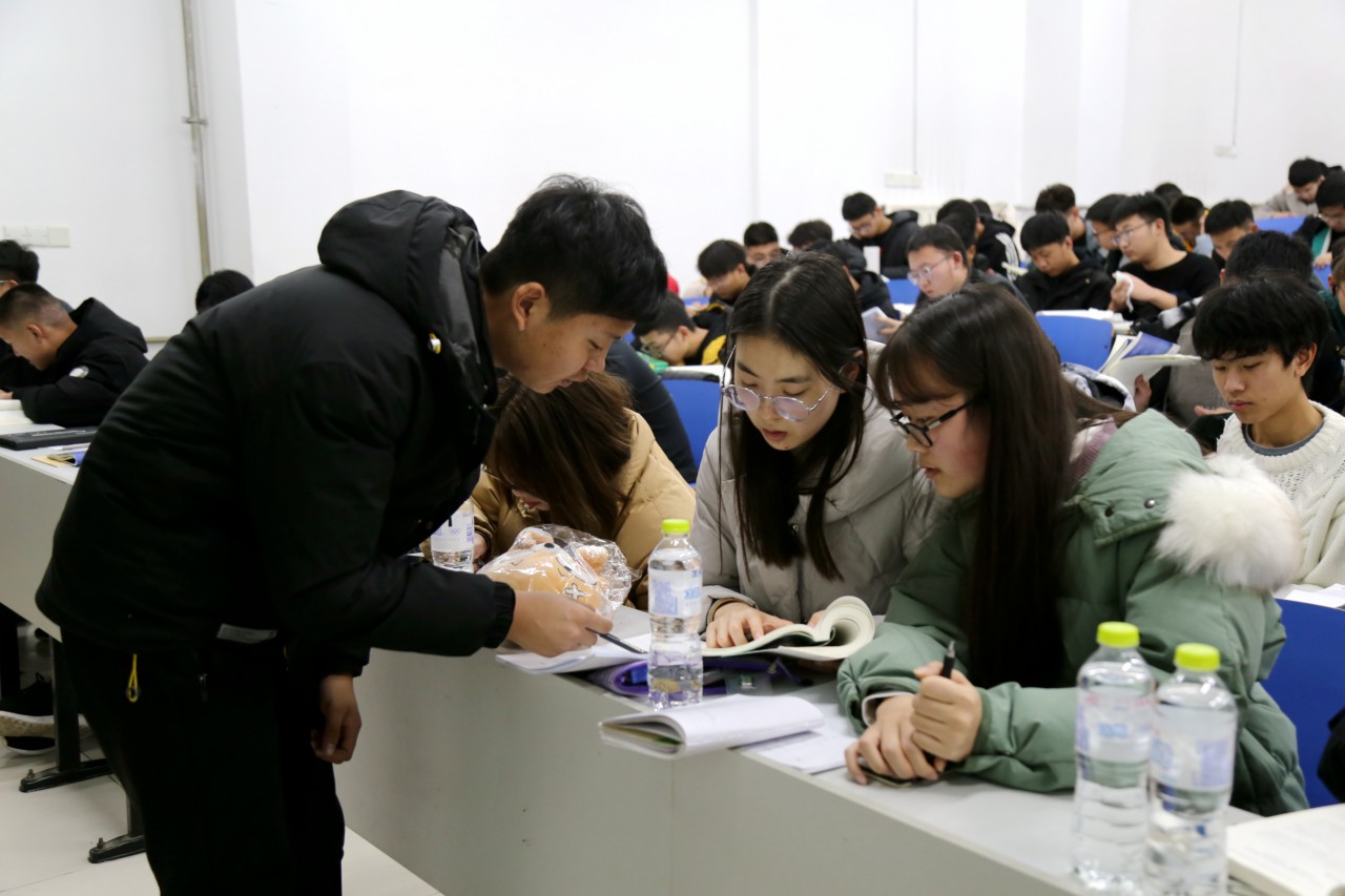 助教团成员依次为同学们讲解高等数学主要知识点及重点,分享了在批阅高数作业时发现的易错点、易混点,并提供了备考小技巧,提醒同学们在备考复习中不要一味追求题海战术,要抓住重点,精准施策。贺明以具体的制图题目为例,细致讲解了制图考试中的重点题目,分享了考试过程中的注意事项,他结合自身学习经验与体会,建议同学们充分利用空余时间和网络资源提高手工制图能力。最后,朱能凯、付文帅、陈鸿、白云杰依次向同学们分享了本学期的学习生活经验以及学习方法总结。交流会上,同学们认真倾听,就自身遇到的学习问题虚心求教,主讲人结合板书耐心解答,学习氛围浓厚。