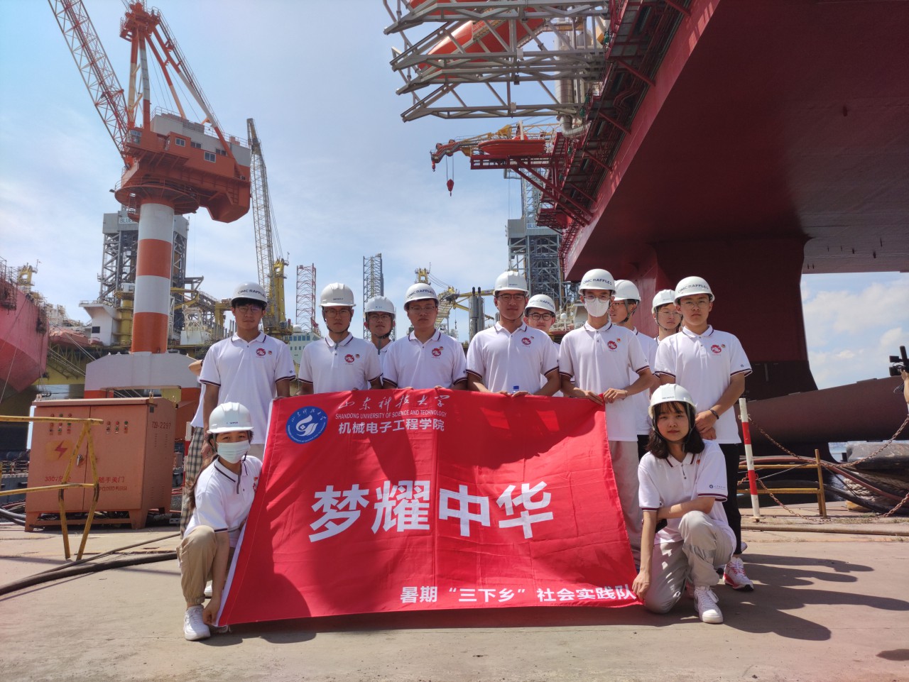 随后,山东科技大学梦耀中华服务宣讲团赴烟台中集来福士海洋工程有限公司进行参观学习,了解业内先进技术领域的前沿发展,调研活动得到烟台市中集来福士项目人力资源部的热情接待。队员们首先进入企业产品模型展厅了解公司发展革沿。工作人员自信而又详细的介绍引得在场同学们连连惊叹。随后,团队沿着习近平总书记视察时的路线,参观了建造海洋平台的施工现场,近距离感受大国重器的磅礴气势。沿着习总书记的脚步,望着高大巍峨的钻井平台,队员们耳畔响起了习近平总书记的谆谆教诲:“基础的、核心的东西是讨不来买不来的,要靠我们自力更生、自主创新来实现,我看你们有这个信心。”