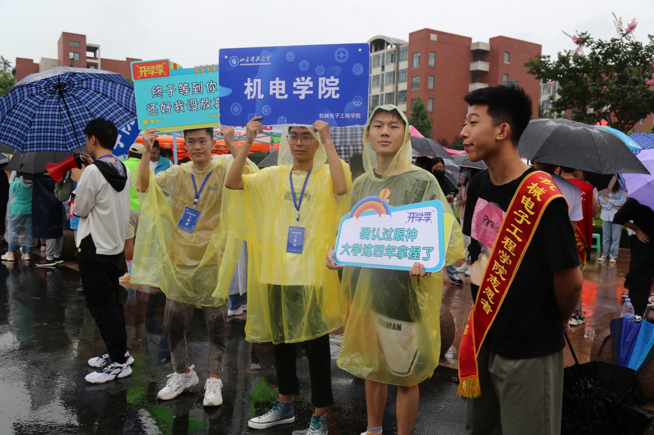 大雨浇不熄机电师生迎新的热情。雨天里,志愿者们身披雨衣,用微笑点亮阴霾,帮助2021级新生搬运行李,早已分不清身上是雨水还是汗水;报到点上,工作人员克服潮湿和雨水,坚守岗位,尽心耐心为新生办理报到手续;为了避免让新生在办理手续的过程中淋雨,机电学院搭建帐篷一条龙,为新生遮风挡雨。