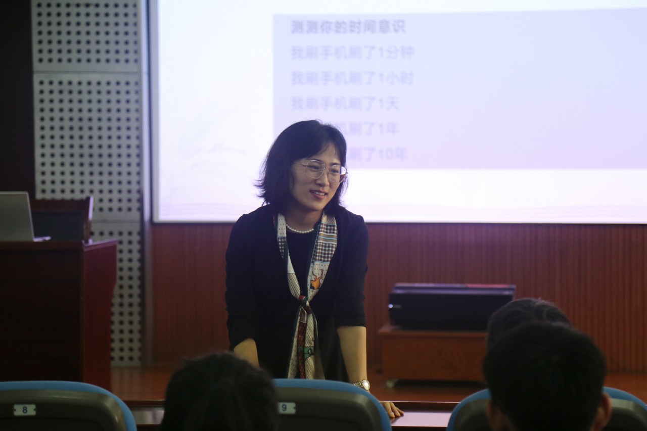 在轻松愉悦的氛围中,岳云霞向同学们介绍了日清单和记录时间在时间管理中的重要作用,并讲解如何利用体力管理、脑力管理、心力管理这三驾马车有效地进行精力管理。她通过介绍管理小妙招,讲述柳比歇夫的传奇一生,推荐相关书籍、高效软件,与同学们做小游戏等多种方式条分缕析,在潜移默化间向同学们传授理论知识和管理方法。