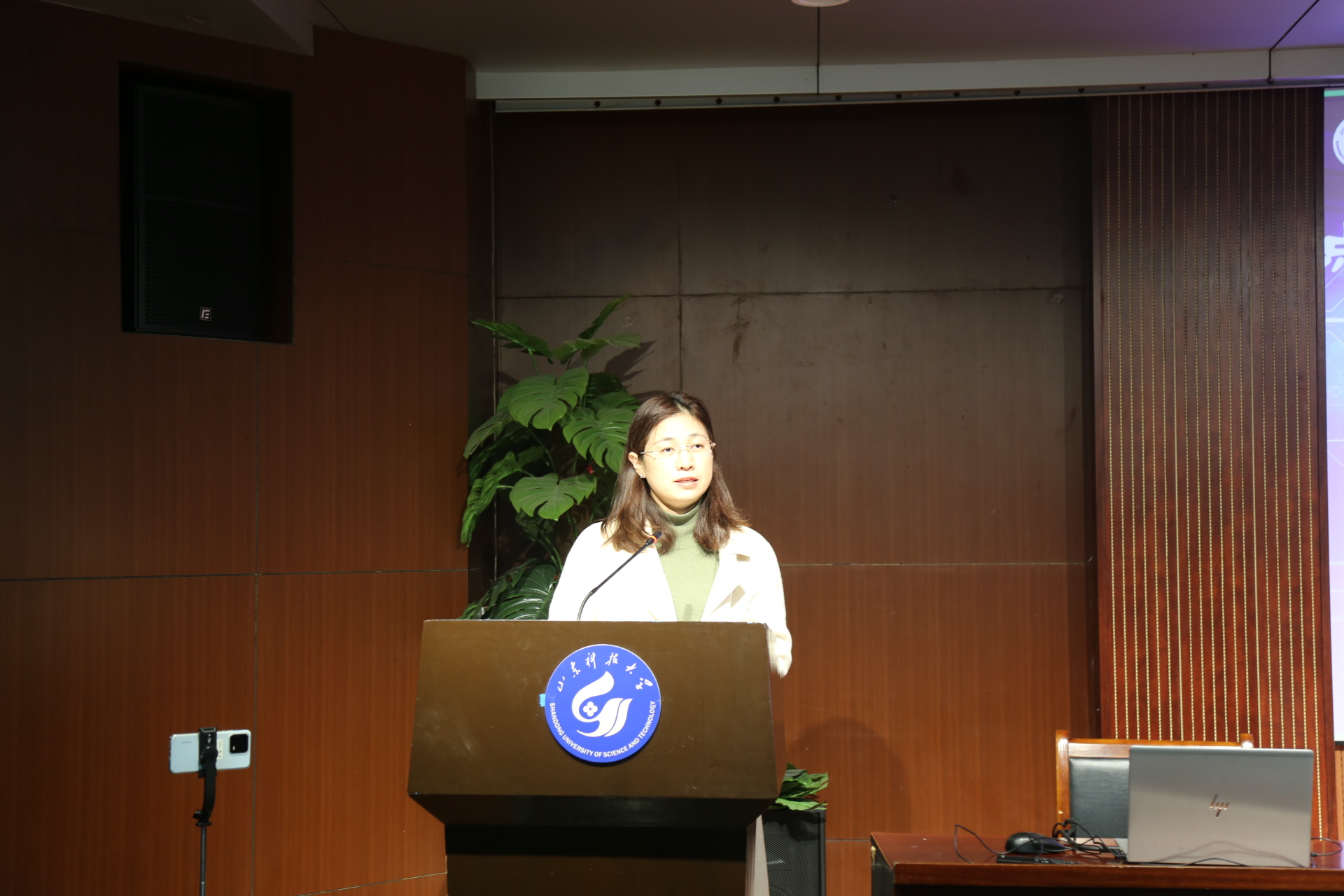 山东科技大学团委兼职副书记、机电学院青年教师张梦超作报告