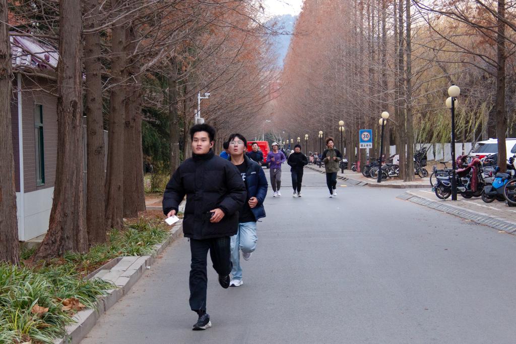 值得一提的是,团委老师杨治宽、苗成旭、李一杰也加入伴跑队伍,他们步伐稳健,用行动为同学们加油助威。