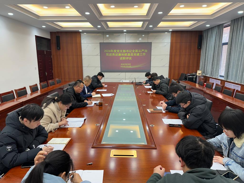 1月13日,机电学院党委组织召开2024年度党支部书记全面从严治党述责述廉和抓基层党建工作述职评议会议,会议由学院党委书记陈猛主持,学院院长、党支部书记及党员群众代表参加会议。