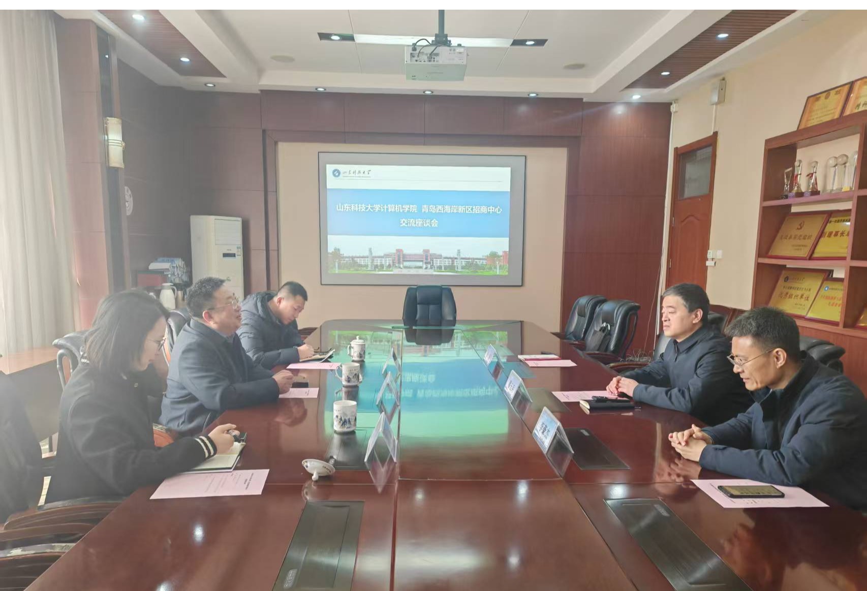 3月11日,青岛西海岸新区招商中心副主任原新明一行到访我院,学院党委书记穆玉兵、院长李豪杰会见客人。