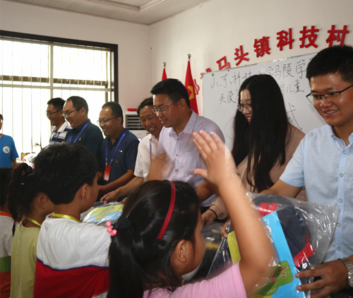 牟仁刚一行还向各支教点的留守儿童赠送了书包、足球等文体用品,鼓励孩子们为了美好明天努力奋斗,立志成才。