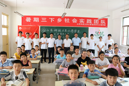 在菏泽市郓城县侯咽集镇黄岗小学,学院领导与前往调研的团省委副书记李梦瑶一行相遇,牟仁刚介绍了山东科技大学计算机学院组织开展学生暑期支教的具体情况,李梦瑶对学院支教学子无私奉献、积极上进的工作态度和工作热情给予充分肯定。