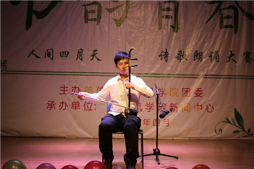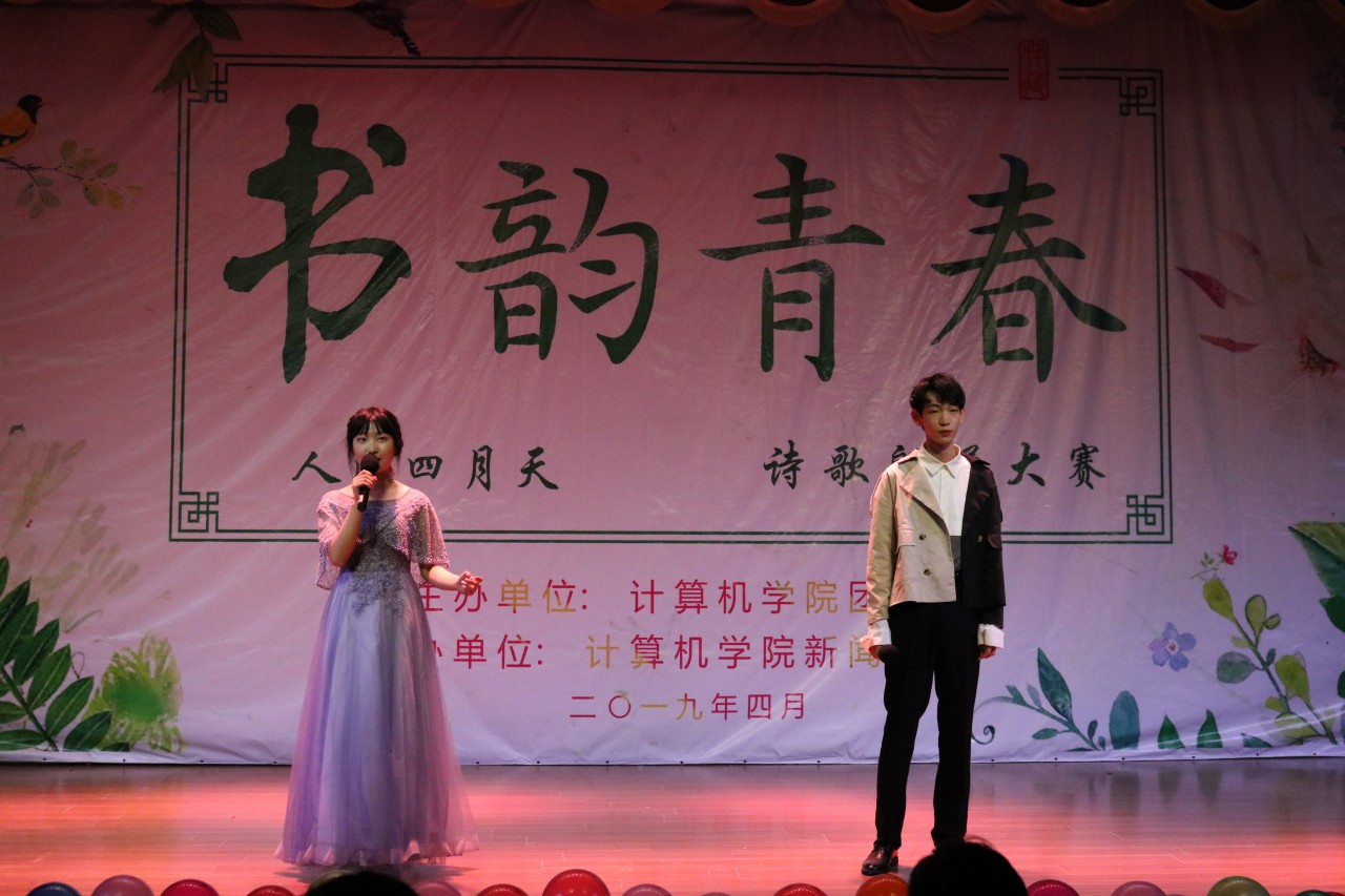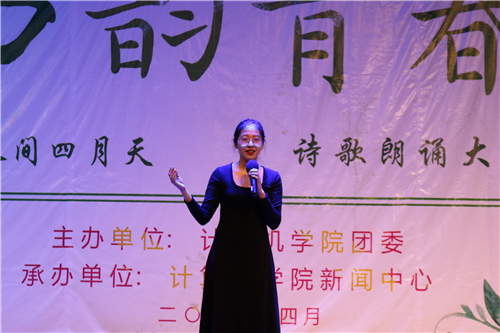 人间四月,诗韵流长。4月20日15:00,由计算机学院团委主办、计算机学院新闻中心承办的“人间四月天—书韵青春”诗歌朗诵比赛在大学生活动中心二楼报告厅拉开帷幕。出席本次活动的嘉宾有材料学院薄艳艳老师,外国语学院高丽老师,机电学院祝月盈老师,计算机学院王宜笑、顾东东、王春菊老师。