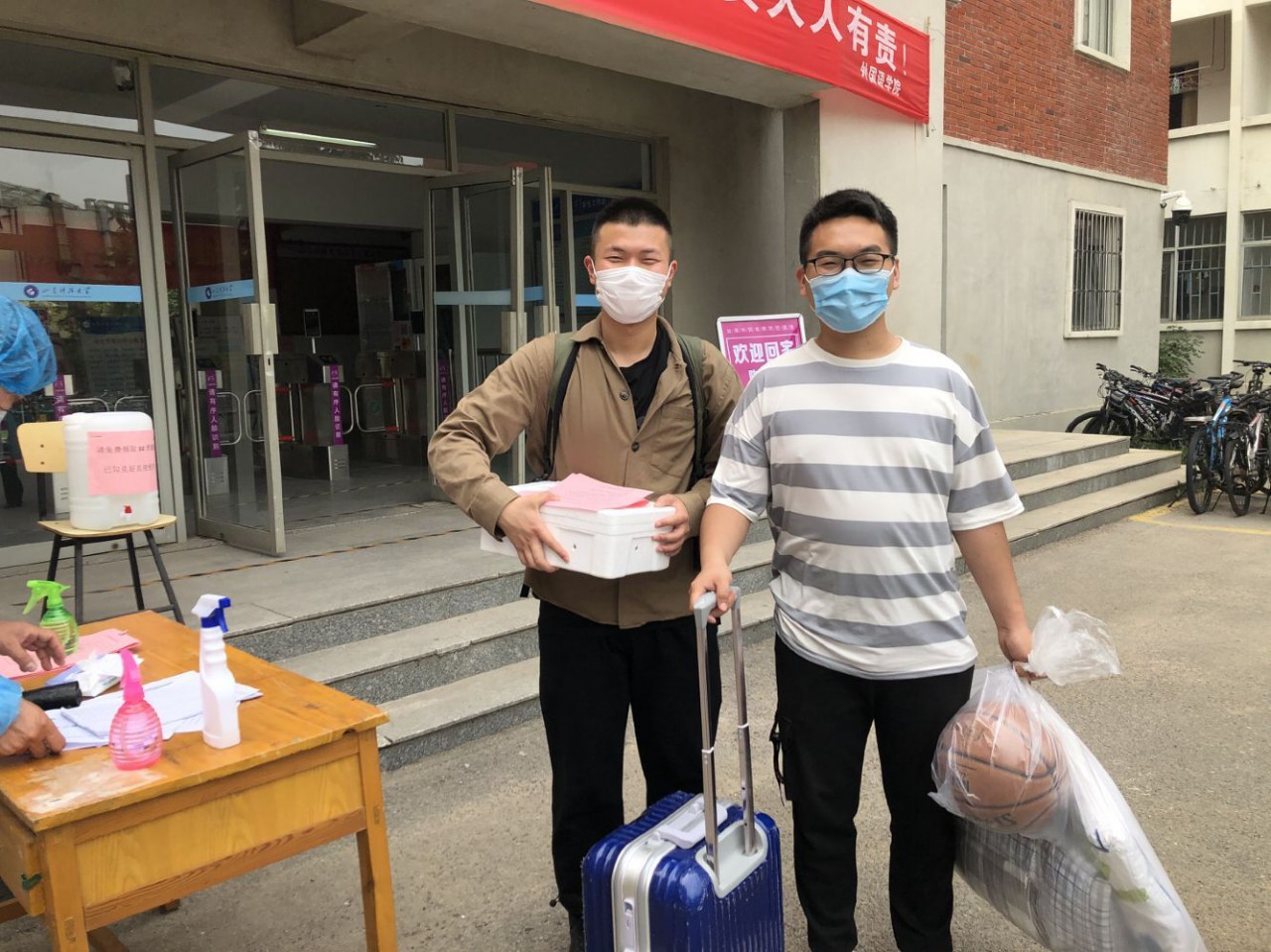 部分先返校的同学,还到宿舍门口迎接刚刚赶来的同学,帮助同学办理入住手续,领取相关材料。