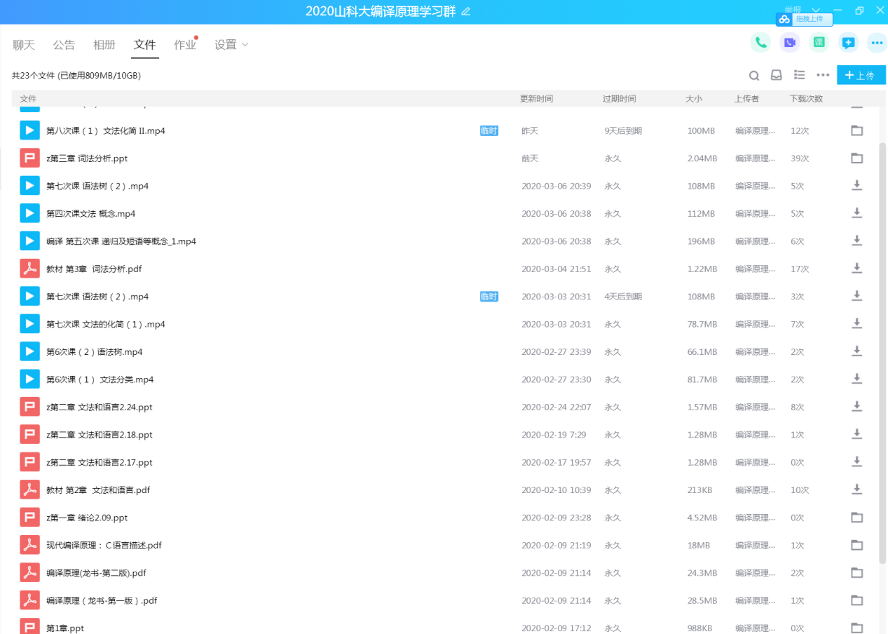QQ上传资料列表