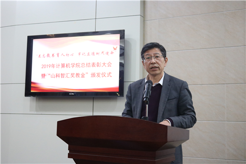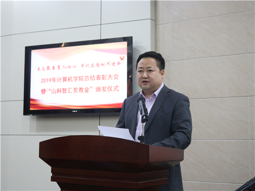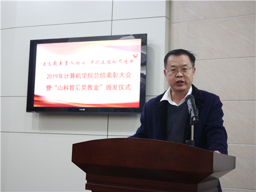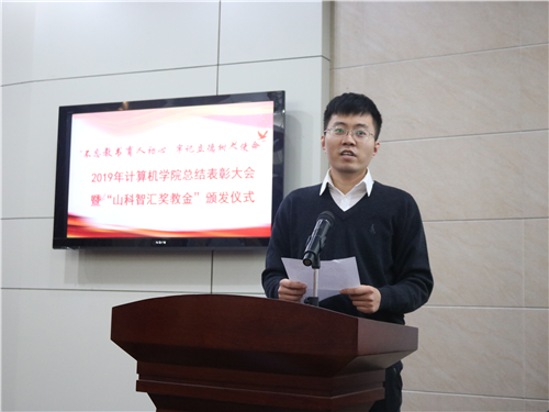 12月29日,我院于蓝光报告厅举办了2019年度总结表彰大会暨山科智汇奖教金颁奖仪式。计算机学院党委书记牟仁刚,院长梁永全,山科智汇公司董事长崔建明,山科智汇公司执行董事、区政协委员林宁波,副院长彭延军,院长助理赵建立出席活动,会议由团委书记王春宇主持,学院全体教职工到场参加。
