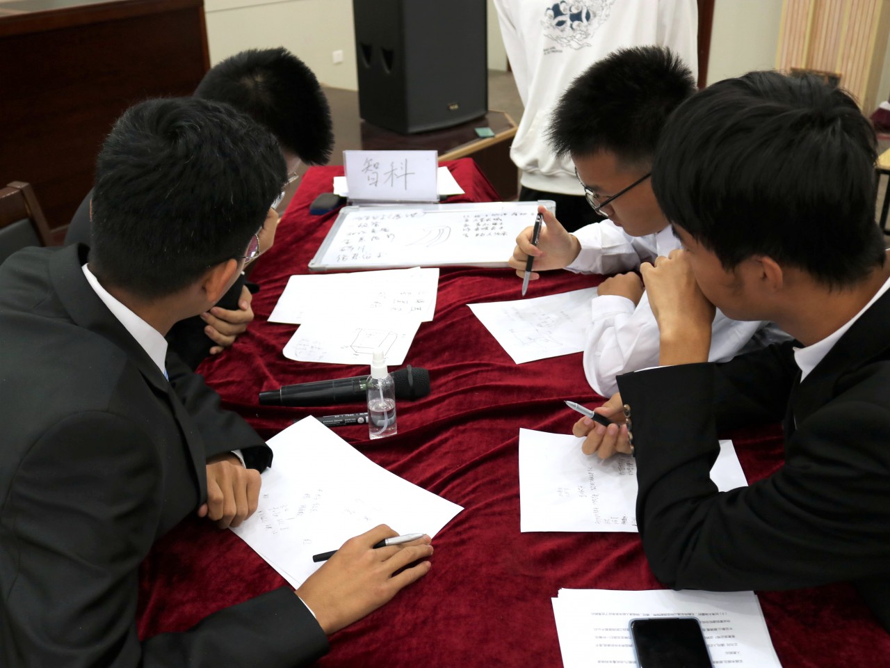本次决赛分为六个环节,分别是“精彩登场”、“眼疾手快”、“知识竞赛”、“辩论环节”、“烧脑时刻”和“绝地求生”。各队按照顺序分别上场作PPT展示,介绍团队成员基本信息及参赛口号,“眼疾手快”中,每位选手迅速记忆大屏幕上的题目,用最短的时间将队伍答案写在答题版上。在知识含量最高的第三环节,面对互抛题的新颖方式,参赛同学理智分析,准确作答计算机发展史、计算机软件等多个题库的随机题目,为自己的队伍积累了一分又一分。中场休息时,各队还进行了“你画我猜”的小游戏,以期为自己的队伍赢得额外加分。最终,智科代表队摘得比赛桂冠,物联网代表队夺得亚军,计科一代表队获季军。